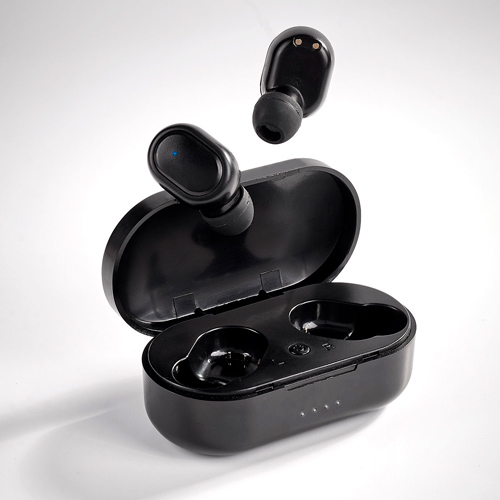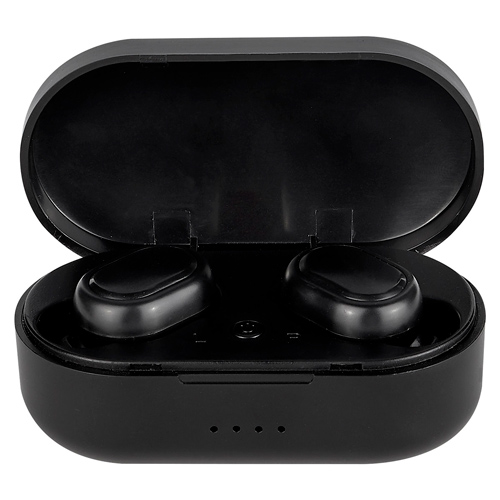 Audífonos bluetooth inalámbricos con batería recargable. Reproducción de música hasta 2 hrs aproximadamente. Incluye cable cargador USB y estuche para recargar los audífonos. Función manos libres.