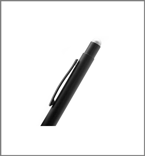 Metálico. Pulsador touch color plata. Clip metálico. Cuerpo negro mate. Destapa electro plateado en parte superior e inferior del bolígrafo.