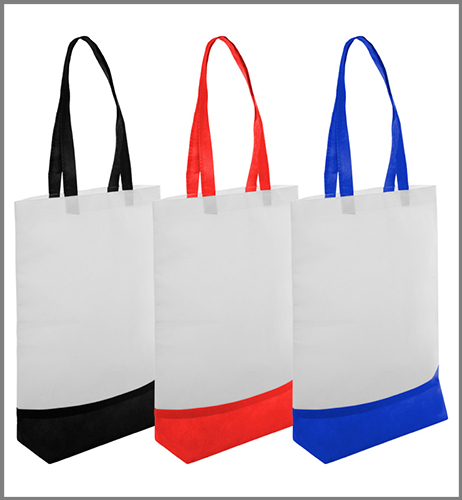 41 x 35 x 10 cm. Cambrel. Bolsa ecológica blanca con detalles de color en asa y base de la bolsa.