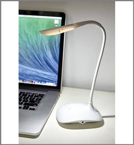 Plástico. Medidas: Base 12 x 10 cm. Alto 26 cm. Luz LED direccionable y flexible. 3 niveles de iluminación. Encendido táctil. Cable USB. Incluye instructivo y caja de regalo.