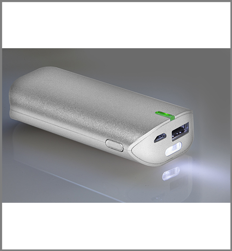 10 x 5 x 2-5 cm. Plástico. Capacidad 5200 Mah. Power Bank con linterna. Cargador móvil. Luz led indicadora de carga- según la carga va cambiando el color. Botón que presionando comienza la carga de un dispositivo y presionando dos veces se enciende la linterna. Con certificación de calidad.