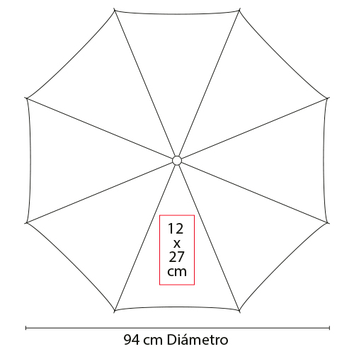 Paraguas tipo Golf con doble recubrimiento interior plateado.