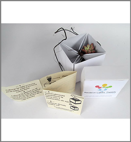 Un regalo muy ecológico porque el empaque se utiliza como matera. Es resistente al riego y mantiene muy bien la planta.