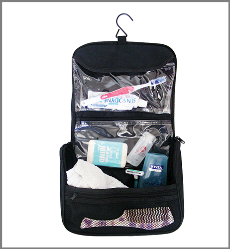 25-5 x 19 x 8 cm Colgante. Con manija para transportar. Cierre de apertura completa. 2 compartimentos internos plásticos transparentes. 2 bolsillos internos de red. 1 compartimento interno inferior.