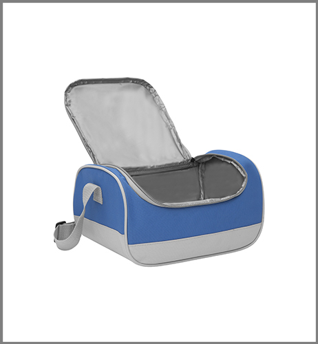 27 x 19 x 14 cm. Capacidad 7 litros. Polyester. Conservadora con interior de politileno forrado de polyester. Correa ajustable.