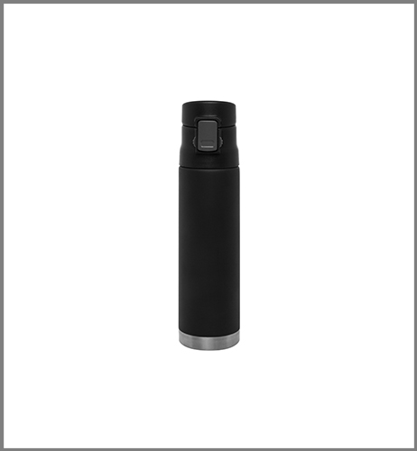 Ø 7 x 25-5 cm. (aprox). Metal. Capacidad 500 ml. Mug de doble pared. Tapa plástica con botón que permite la apertura. Ajuste de seguridad. Producto no térmico.