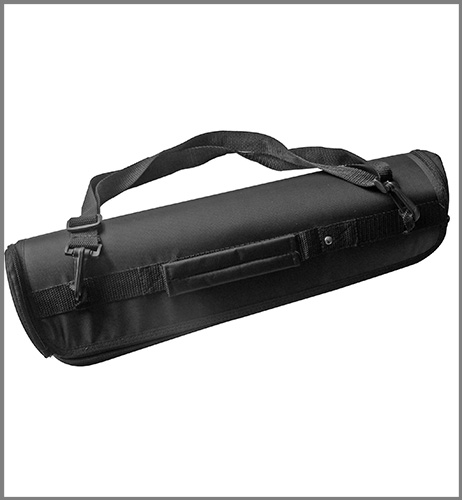 Ø 11-5 x 42-5 cm. Polyester 210D- metal y madera. Set de 10 piezas: Espátula- tenedor parrillero con mango- pinza- cuchilla- 2 pinchos para brocheta y 4 pinchos pequeños. Estuche con cierre y correa regulable.