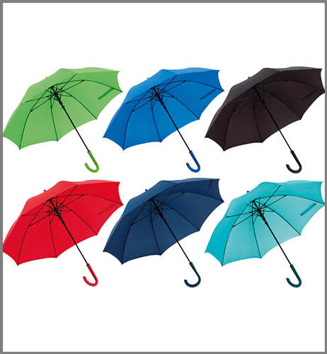 Paraguas de poliéster pongee de 26″ Aprox. Mango siliconado- varillas metálicas- apertura automática. Largo total 89 cm. 8 cascos. Medida de cascos 38×59 cm. Cobertura de 100 cm. Ancho de vara de 1 cm. Tiene un mecanismo de apertura de botón. Con cierre de velcro.